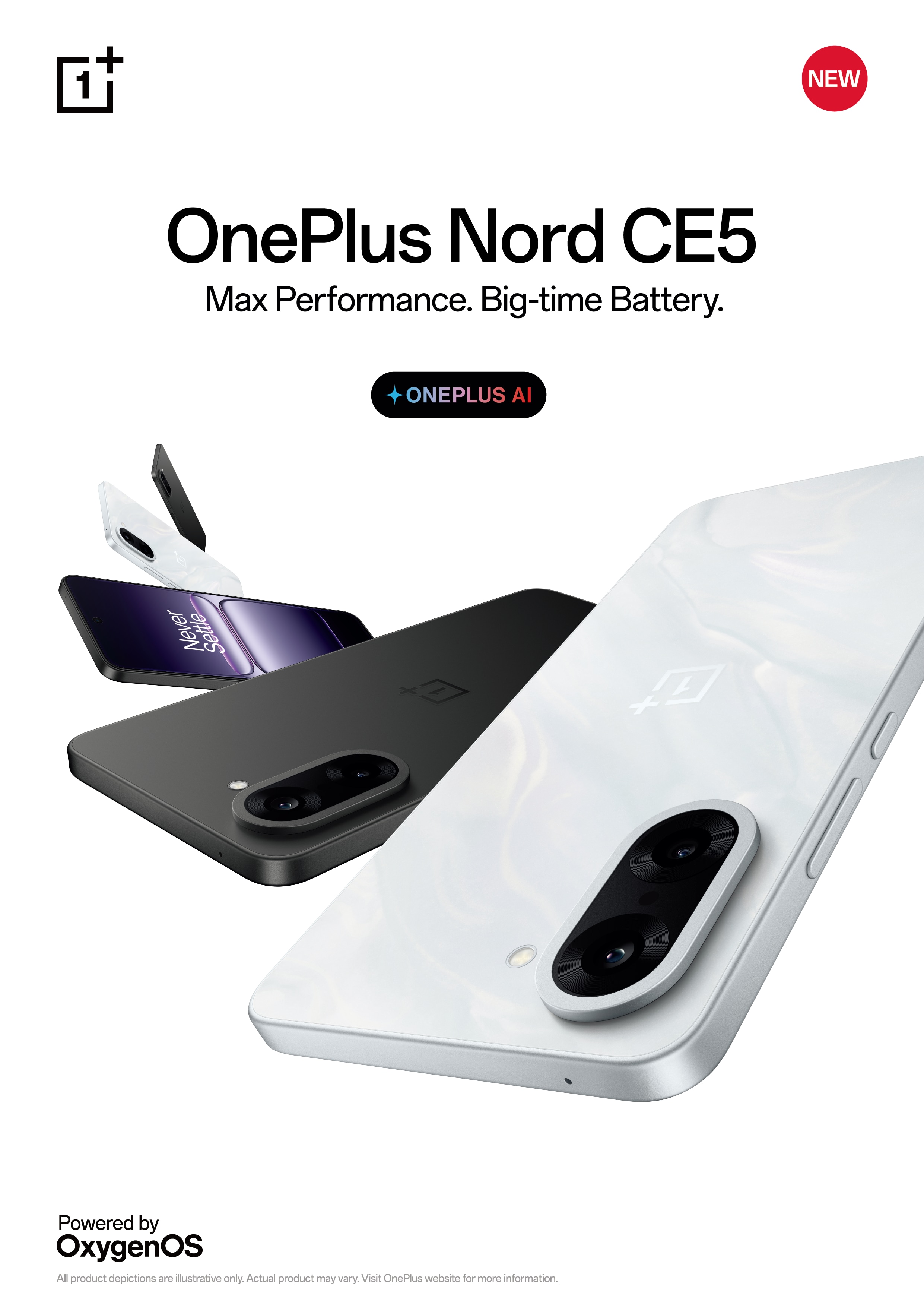 Telefon OnePlus Nord CE5, Dual SIM, 8GB RAM, 256GB, 5G, Marble Mist